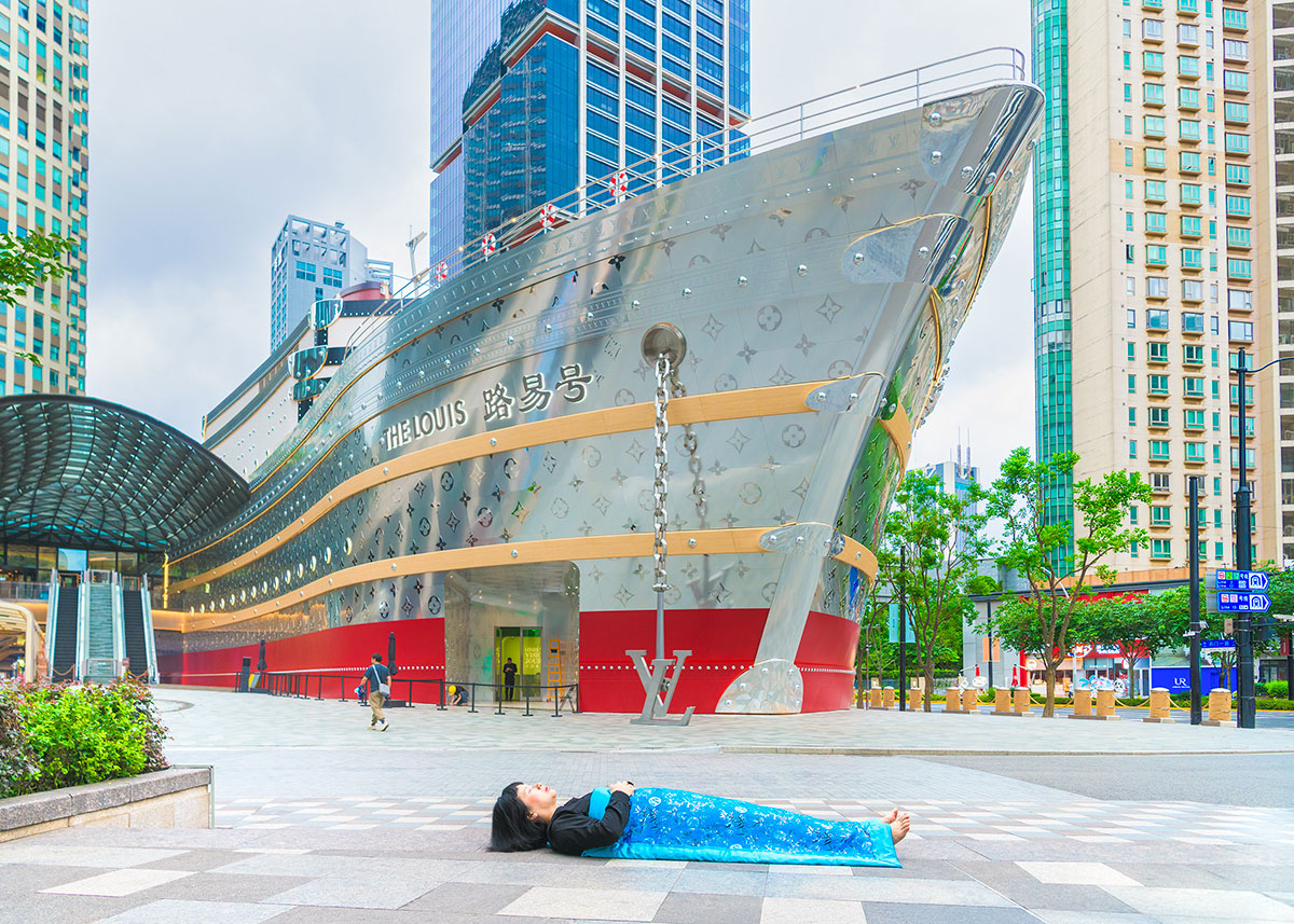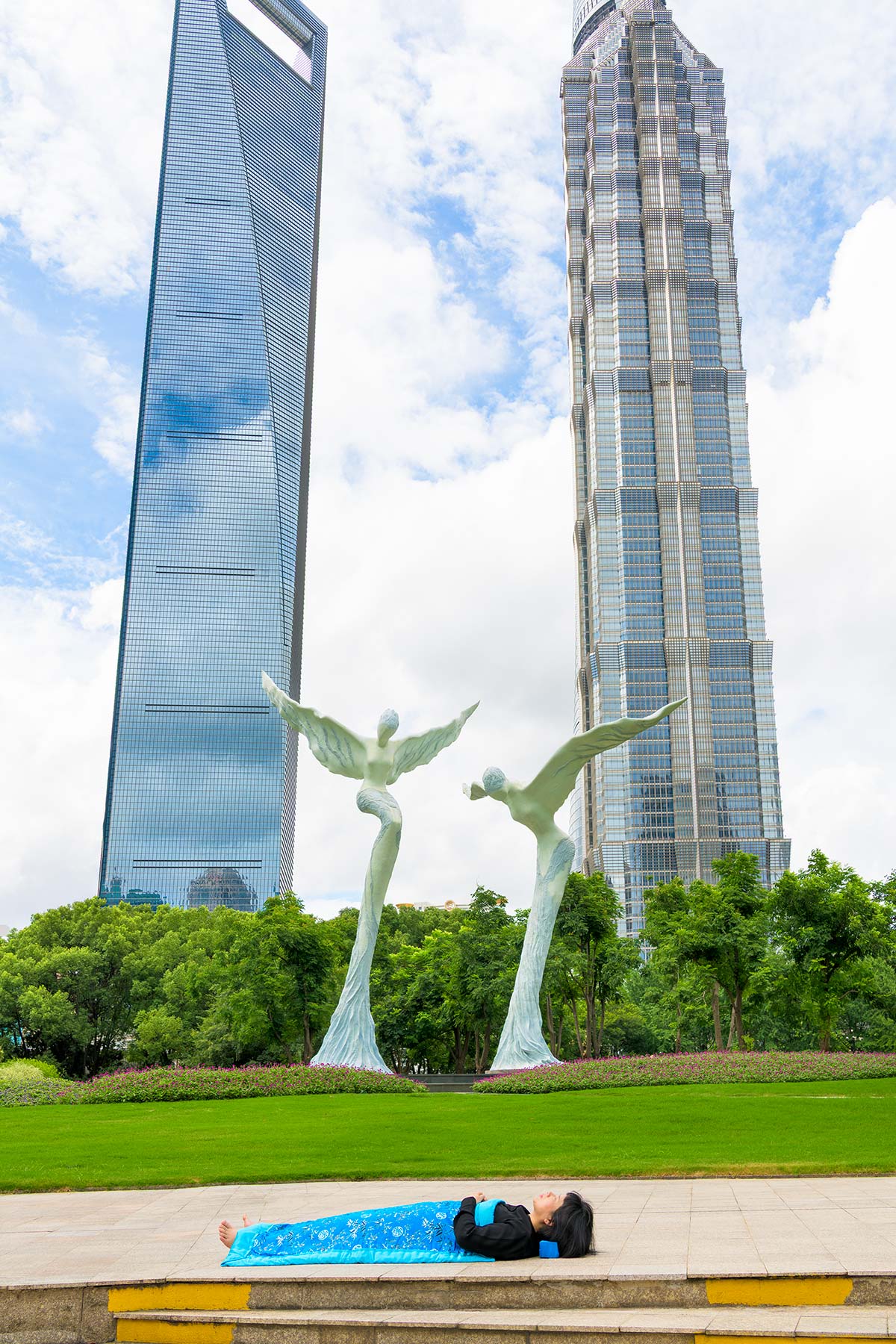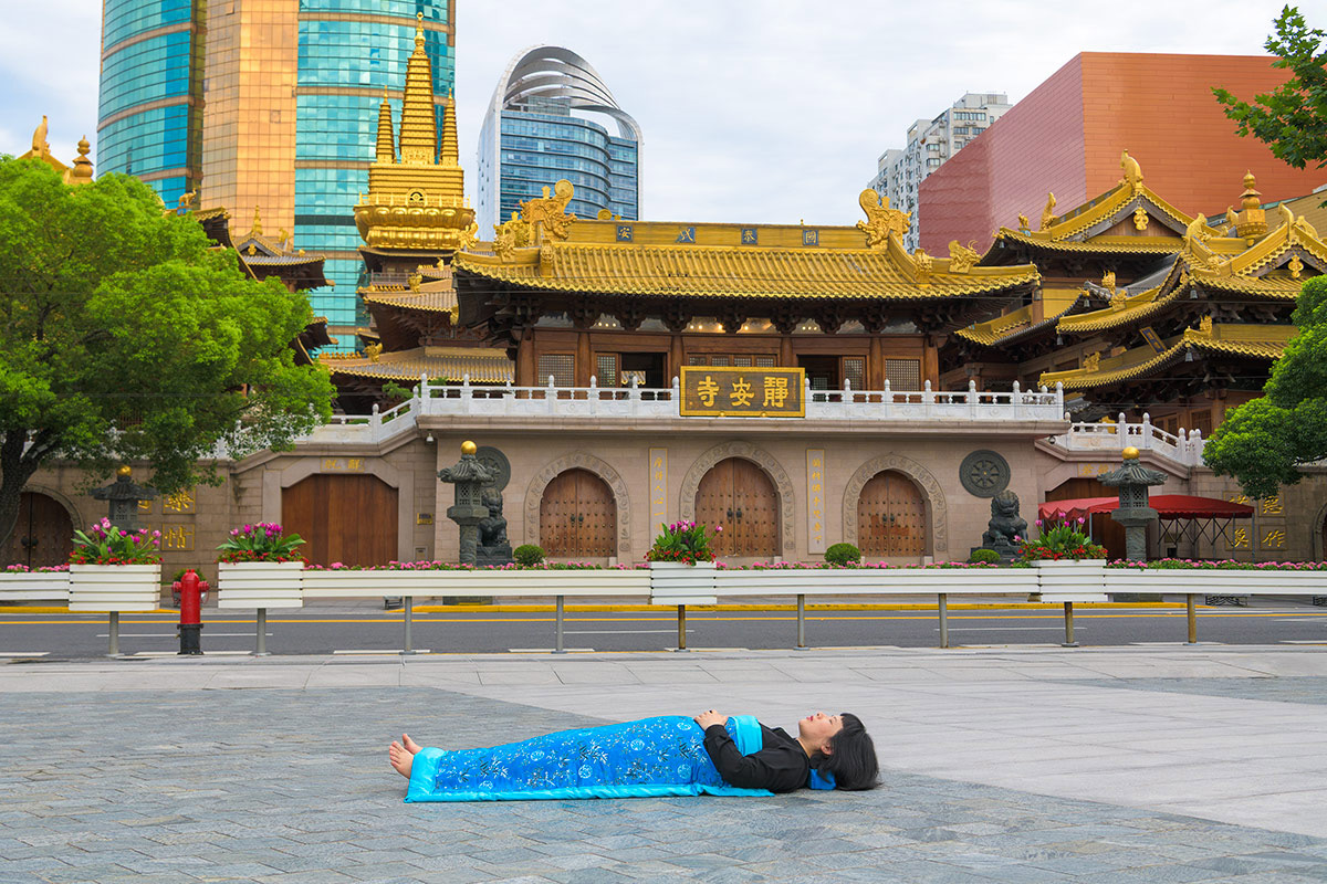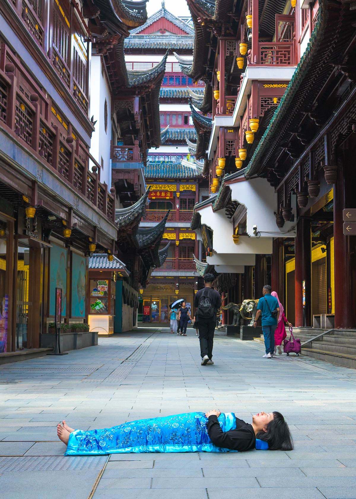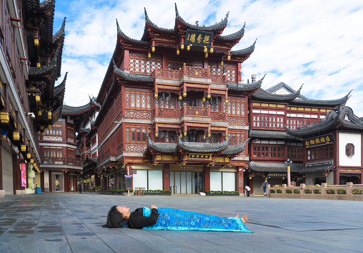 This project is inspired by a funeral tradition in my hometown in China. When an elder person passes away, the daughters of this elder make shrouds with silk fabrics to cover their deceased parent’s body. If this elder has six daughters, this elder’s body will be covered by six different shrouds, layer by layer. As someone living abroad alone, without children or immediate family, the question of who will bury me after I die sometimes bothers me. Therefore, I make my own shrouds and bury myself publicly and repeatedly wherever I travel. This performance is a conscious act of agency, a celebration of existence, resilience, and continual rebirth. To lie down beneath these silken layers is to mark the beauty of being alive, to honor the body as both vulnerable and powerful, ephemeral and enduringg, transforming a ritual of farewell into one of affirmation and presence, a performance of becoming, in a world that so often seeks to erase.