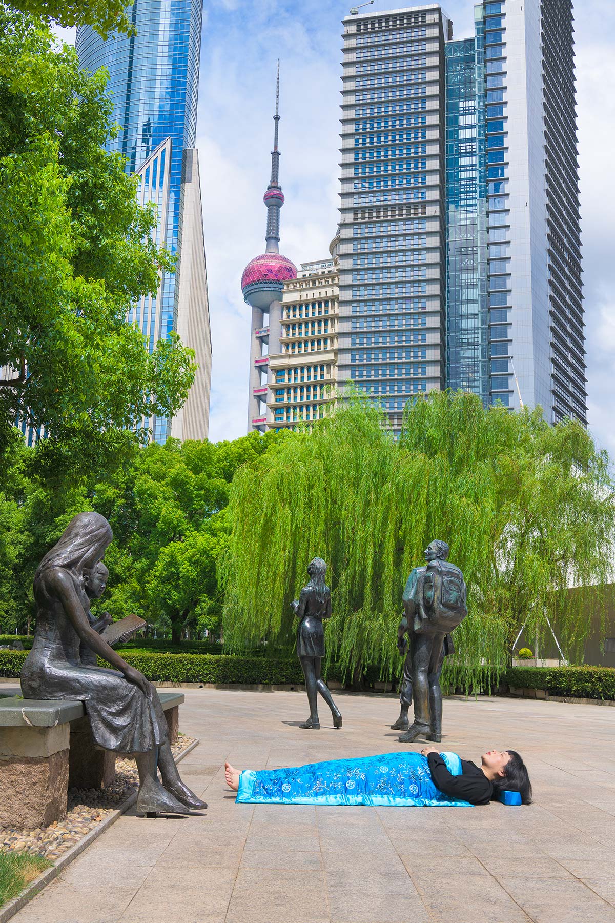 I Have Been There is an on-going public intervention performance that explores belonging, diaspora, and embodied existence in public spaces. Each time I travel to a new place, I make a new duvet with Chinese traditional embroidered silk fabric. Covered by the duvet, I lie on ground of historical sites, landmarks, tourist attractions, and other significant places or events as a sign of negotiating and/or engaging with cultures and spaces.